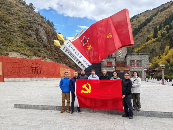 10月19日上午,由陕西省微生物研究所微生物资源前期开发研究中心、陕西省动物研究所林麝保育创新技术研究中心以及林业系统资深专家组成的联合科考队,于青海省班玛县红军沟成立临时党小组,并共同瞻仰参观了当地红色革命遗迹。省微生物所科研第二党支部党员刘颖;省动物所科研第一党支部书记杨超、党员边坤、孙阔;省林业局退休党支部党员雷颖虎;民主党派万一、王艳、李斐然参加了本次活动。