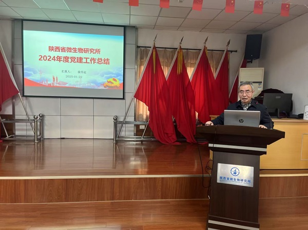 随后,党委书记徐升运进行2024年度党建工作总结。他提到,2024年,研究所党委在分省院党组的领导下,坚持以习近平新时代中国特色社会主义思想为指导,深入学习贯彻党的二十大精神,贯彻落实党的二十届二中全会、党的二十届三中全会精神和全国两会精神,认真贯彻落实党中央决策部署、省委工作要求和院党组工作安排,充分发挥党委“把方向、管大局、保落实”的领导作用提升基层党组织战斗堡垒作用,推动党建与科研工作深度融合,促进研究所各项工作得到突破发展,为服务陕西省地方经济可持续发展、推动微生物所高质量发展提供了坚强政治保障。