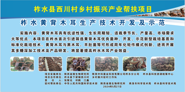 2024年,省微生物研究所深入贯彻落实省委、省政府关于乡村振兴的决策部署,充分发挥本单位科研优势,聚焦食用菌等柞水优势产业关键技术攻关、科研成果转化和本土科技人才培养,为乡村振兴工作提供了强有力的科技支撑。在产业带动方面,通过成功申报陕西省科学院揭榜挂帅-乡村帮扶专项《柞水黄背木耳生产技术开发及示范》等食用菌项目,积极引进黄背木耳优良菌种并开展“黑木耳-羊肚菌-黄背木耳”轮作周年化多元栽培模式示范,累计示范约7684㎡、120000袋。通过入园务工、技术指导、示范带动等多种方式带动当地村民近百人次参与食用菌产业,提高了群众的收入。同时,通过“科技特派员”“田间课堂”等形式,累计培训当地农户和从业人员300余人次,为乡村发展注入持久动力。
