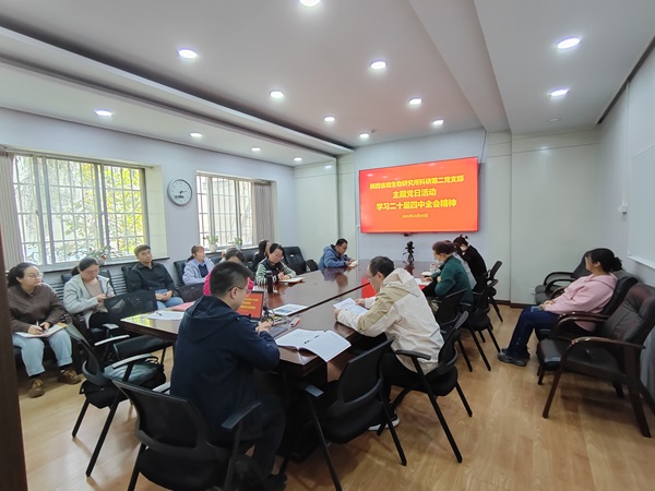 近日,陕西省微生物研究所党委组织全所党员干部深入学习党的二十届四中全会精神,党委领头学、支部专题学、党员自觉学,结合科研工作实际,展开热烈讨论和交流,迅速兴起了学习宣传贯彻全会精神的热潮。
